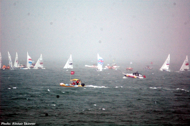 This was however only the appetiser and real clue to the prevailing conditions. Sorry but any photos posted to this report are a bit 'rained out' but who cares? It was a great day for sailing and more importantly a great day for British Olympic Sailing.