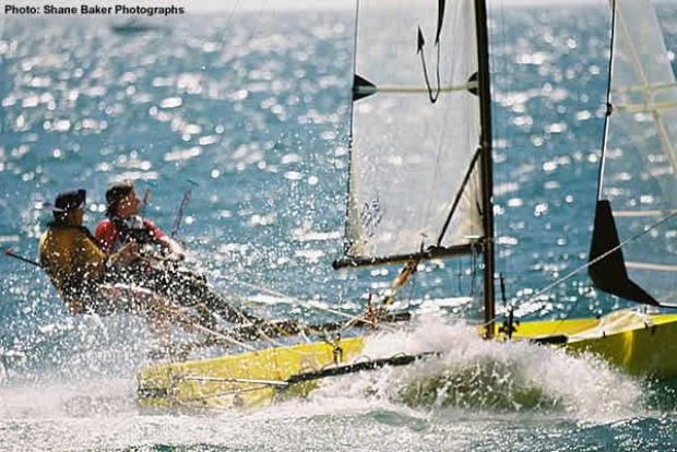 1999 Sail Melbourne International 14 world champion Grant Geddes was today disqualified from Race #1 of the 2003/2004 Sail Melbourne International 14 South Pacific and Australian National Championships after being over the line at the start of todays race.