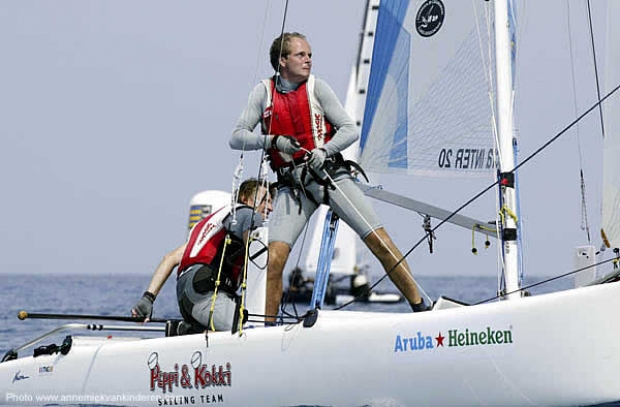 The top ten competition of this year’s Aruba Heineken Catamaran Regatta is strong. On Tuesday November 11 2003, the gap between the the two overall leaders decreased to just one point. The British team Sunnucks/Self is still just ahead of Dutch Formula 18 sailors Larsen/Pols and Graat/Koene.