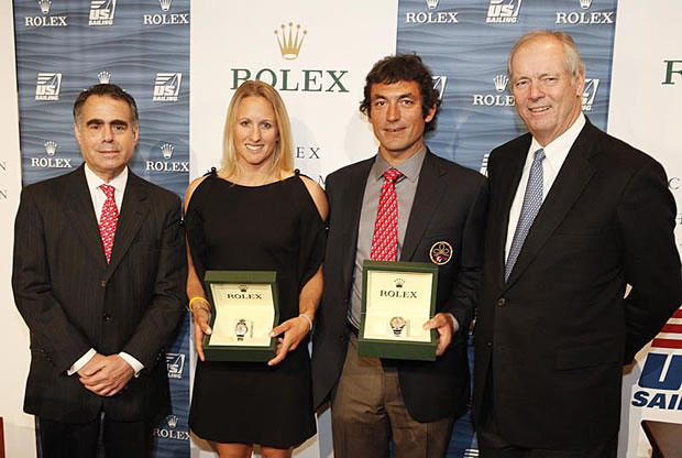 The award recipients, chosen for their outstanding on-water sailing accomplishments in 2009, were joined by family, friends, sailing dignitaries and members of the press at the New York Yacht Club’s renowned Model Room for an intimate retrospective on their rise to the top of the sport. Gary Jobson, President of US Sailing and one of the sport’s most familiar media personalities, presented sailing highlight videos with childhood photos for each winner, which led to emotional acceptance speeches. The recipients received specially engraved stainless steel and platinum Rolex Oyster Perpetual Yacht-Masters, symbolic of their achievements in excellence. Also participating in the program were Rolex Watch U.S.A.’s President and CEO Allen Brill, US Sailing Executive Director Charlie Leighton and US Sailing Olympic Sailing Program Chair, Dean Brenner.