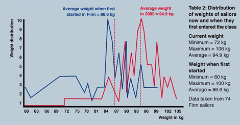 At the end of 2009 the Finn class carried out a survey of its top sailors to accumulate data regarding the weight, height and age when they started sailing the Finn, to try and build a picture of the current fleet and to examine how these factors have changed over the years.
