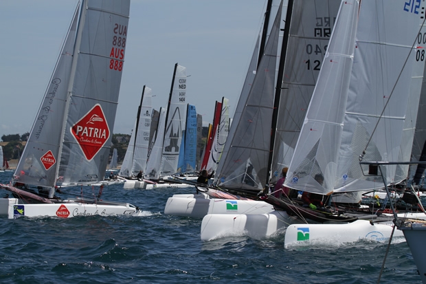 Three horse race at the Formula 18 Worlds