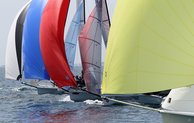 Race Three was the breeziest of the day, with up to 15 knots on the course. One again the black flag was brought into service after another general recall. A clean start was had by all. Having a very strong regatta, Guy Bancroft and David Grace in Bonework (AUS 778) led all the way from Ullman Sails, Mark Watts and Chris Bishop (GBR 772) . In third was another sailmaker, DS Sails (GBR 777) Dave Dobrijevic and Phil Eltringham.