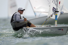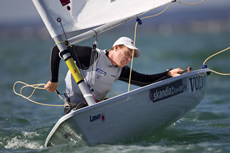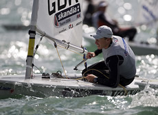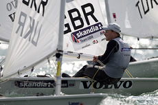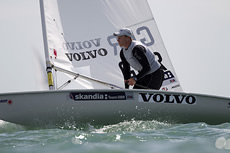His early statement of intent saw the Aucklander ashore this afternoon with a lead of one point over Skandia Team GBR’s Paul Goodison, the Olympic and defending World Champion who opened his regatta with third place and then won his second heat by a comfortable distance.