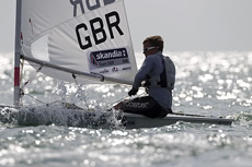 Australia’s double world champion Tom Slingsby, who arrived late Saturday at Hayling Island fresh from winning the Etchells World Championships in Howth, Ireland with America’s Cup legend John Bertrand, showed no sign of rustiness when he won his first heat, but he admitted to trying to break from the pack’s conventional thinking on the first downwind of the second race - his error dropped him four boats to score an eighth.