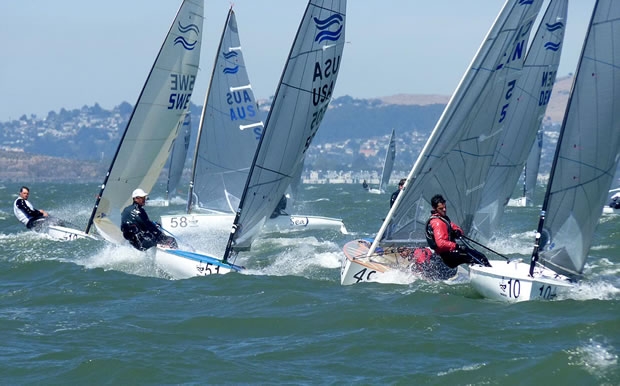 The day started misty and calm and by 12.00 it was a beautiful sunny day with 5-6 knots on the race area. However the heavy mist rolling in through the Golden Gate was a foreteller of things to come later in the day with a cold breeze quickly building on the first leg to peak out at 22 knots.