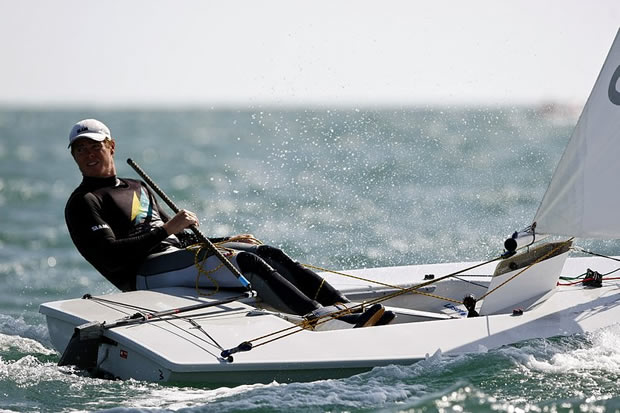 On the strength of two impressive race wins in slightly stronger breezes today off England’s Hayling Island Australia’s double world champion Tom Slingsby stepped four points clear at the top of the Laser World Championships leader-board after six of the eight scheduled Qualifying Races have been sailed.