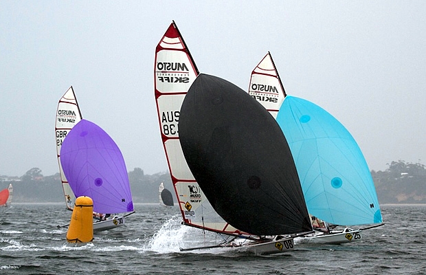 At the leeward mark Tom Wright GBR 432 had taken hold of the race with Dave Poston GBR 324, Marcus Hamilton AUS 453 and Jono Neate AUS 440 close behind.