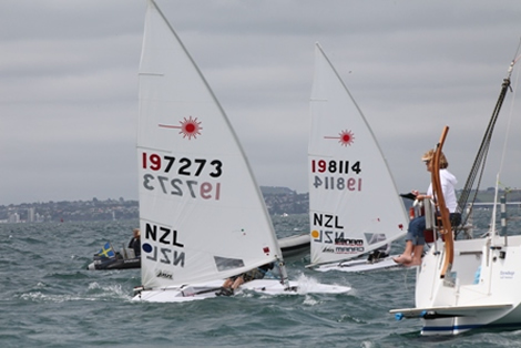 It’s all on between Andrew Murdoch and Mike Bullot, both NZL Sailing Team sailors, at the top of the 30-strong Laser fleet. With a 3-2-1 score card today Murdoch edges out in front – on 10 points he is just two clear of Bullot who also had solid results today with 2-1-4 in the three races sailed.