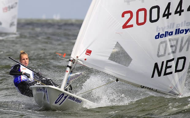 The competition is fierce in the Laser Radial, with most of the ISAF ranked top ten racing at the Delta Lloyd Regatta. Defending champion Marit Bouwmeester (NED) has taken the lead after posting first and a second places, in front of Ireland's Annalise Murphy and Belgian Evi van Acker. In fourth and fifth places are Beijing Silver and Bronze medallists Gintare Scheidt (LTU) and Xu Lijia (CHN). “With started both under a black flag, and it was tricky, but I am fast in the breeze and have chosen to take it easy on the start and sail safe,” explained Marit Bouwmeester.