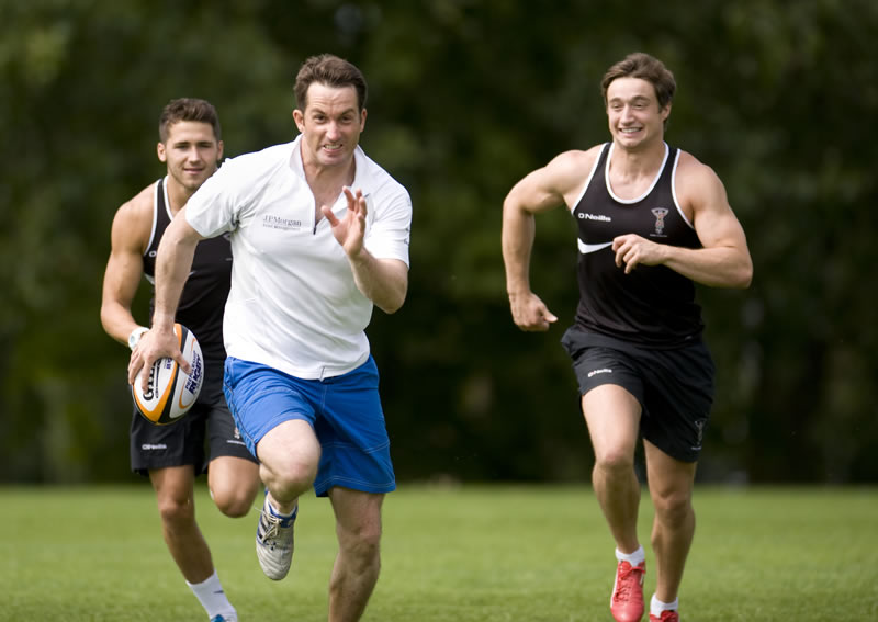 Ben Ainslie joined Premiership Rugby Club Harlequins for a pre-season training session today. The sailor was at the club’s training base at Surrey Sports Park to compare fitness programs and to see how the club’s sevens squad are preparing themselves for the J.P. Morgan Asset Management Premiership Rugby 7s Series 2011 which kicks off on Friday 15 July at The Recreation Ground in Bath.