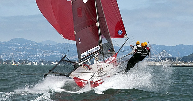 Trevor Barnabas tagged along from Australia to watch his son Trent crew for defending champion Michael Coxon in the 10th annual 18ft Skiff International Regatta, hosted by the St. Francis Yacht Club.