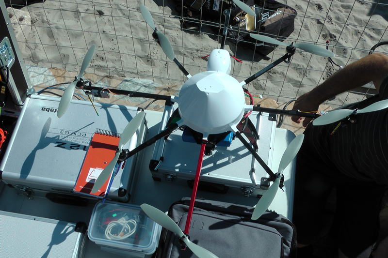 While the basic design and technology used in the helicopter is of German origin, Rueda has carried out considerable customisation to accept the two cameras fitted to it. One camera is a miniature low resolution webcam type, while the other, slung beneath the main body of the helicopter, is a compact lightweight GoPro. The former is the ‘pilot’ camera while the GoPro records the high definition footage. Images from both are beamed back to a base station ashore where there are two screens showing the output from the cameras.