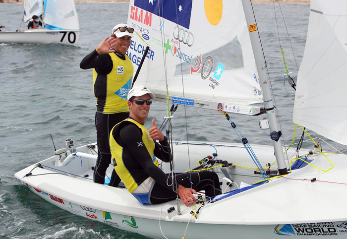 With an 18-point lead going into the Medal Race, Australia’s Mathew Belcher and Malcolm Page sailed a smooth safe race to comfortably complete their successful defence of the men’s 470 world title. Their fourth place finish was enough to secure Malcolm Page, the Beijing Gold medallist, his fifth world championship title.