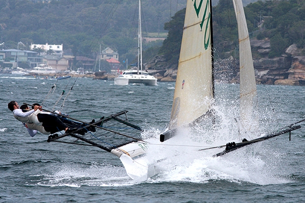 18ft Skiff Racing resumed on Sydney Harbour today when the Australian 18 Footers League conducted the Cordukes Clubhouse Trophy race over a three-buoys northeast wind course.