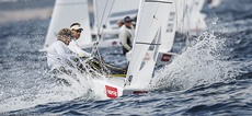 Skandia Team GBR's Hannah Mills and Saskia Clark are making a late bid for the medal race positions after a tough start to their week. They ground out a 4,1 from their two races – a score matched only by Japan's third placed Ai Kondo and Wakako Tabata. After a difficult week they are now 14th overall, while their training partners Sophie Weguelin and Sophie Ainsworth, who have been punching above their weight this week, were unable to hold on a top three overall position for a fourth day and have dropped to seventh overall.