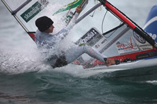 The RS:X Men raced in the morning in the more moderate conditions, but with the same two players – France’s Julien Bontemps and Britain’s Nick Dempsey - out the front. However the field is closing in behind them, with the talented Dutchman Dorian van Rijsselberge, now just one point behind Dempsey with Pole Przemysaw Miarczyski another two behind.