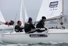 The home team is also ahead in the Sonars, with John Robertson, Hannah Stodel and Steve Thomas' 2-3 today moving them into first now two points ahead of the Netherlands’ Udo Hessels, Mischa Rossen and Marcel ven de Veen.