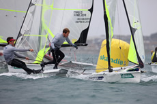 In the 49ers, France’s Emmanuel Dyen and Stephane Christidis made the best of today's conditions along with British Olympic representatives, Steve Morrison and Ben Rhodes, elevating them to second and fourth overall respectively. However the Aussie favourites, Nathan Outteridge and Iain Jensen were also up there and continue to lead, now with a six point advantage over the French.