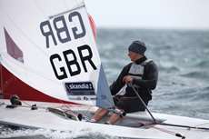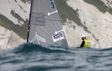 Competitors on day three of Skandia Sail for Gold got a first glimpse of the big conditions forecast for tomorrow and Friday. Although the torrential rain had abated, giving way to a blustery but sunny afternoon, the southwesterly winds were piping up to 20 knots and there was a nasty sea and spring tide for the classes competing out on Weymouth Bay.