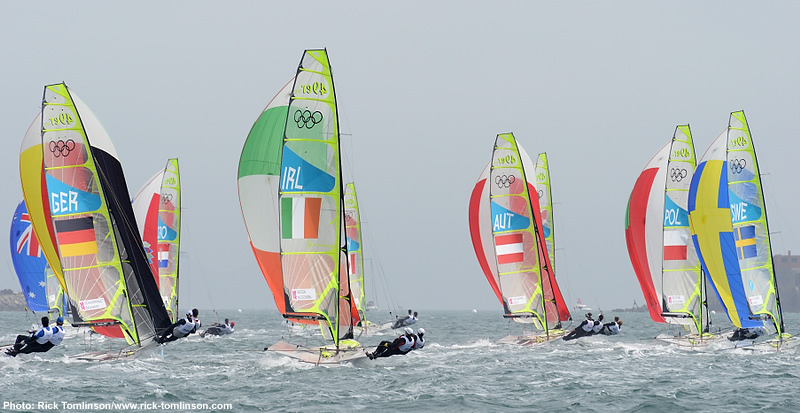 Race 2 saw Irelands’ Ryan Seaton and Matthew McGovern and the USA’s Erik Storck and Trevor Moore round the top mark in unison with the Aussies up to third, the Kiwis fifth and the Brits in seventh. The Aussies and Brits gybed early and so it was that Outteridge and Jensen moved into the lead at the gate with the Iker Martinez and Xabi Fernandez up to fourth ahead of the Brits. The Aussies extended away up the next beat and the down the next run.