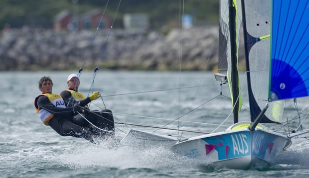 Australia’s Nathan Outteridge and Iain Jensen were the form team going into London 2012 and secured the gold medal, rounding out the day on just 48 points, while their Kiwi training partners Peter Burling and Blair Tuke brought home the bacon to claim the silver, on 76.