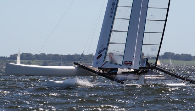 Invictus’ progress has been boosted by a partnership with a new team from Europe which is at present finalising their sponsorship arrangements and will announce very soon. The synergetic partnership will collaborate completely off the water, with the two teams then competing fiercely under their own national flags on the water. This provides both parties with an ability to compete in a world where economic conditions make finding financial support much harder. This partnership is already moving forwards: the first wing will start manufacture in October. Invictus brings to the table wings, fixtures, fittings and controls developed with the help from EADS and Exeter University and their titanium additive layer manufacturing capability.