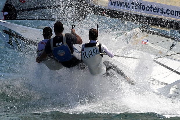 Conditions were so demanding on both boats and crews that only five of the 19 entries were able to complete the four-lap course and none, including the winner, avoided at least one capsize.