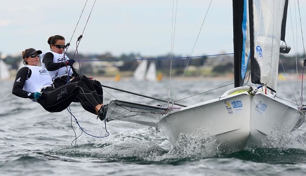 In the new Olympic class, the 49erFX, New Zealand’s Alex Maloney and Molly Meech put a pair of wins and thirds together for their day’s work to lead overall by four points from Australia’s Tessa Parkinson and Kate Lathouras. Silver medallist, Olivia Price is on equal points, but cannot be considered for a medal as she is sailing with James Sly. In third place is the Norwegian pair of Ragna and Maia Agerup, 10 points behind the Australians.
