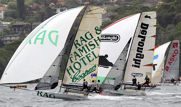 Former Australian 16 Footer champion James Dorron, Ricky Bridges and Mike McKensey were always near the lead in Mojo Wine before taking out the race by just 7s from De’Longhi-Rabbitohs (Andrew Cuddihy, Simon Nearn, Keegan York).