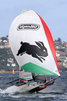 At the final windward mark De’Longhi-Rabbitohs had a slow spinnaker set and the Mojo Wine crew pounced to take the lead and hang on for the narrow victory.