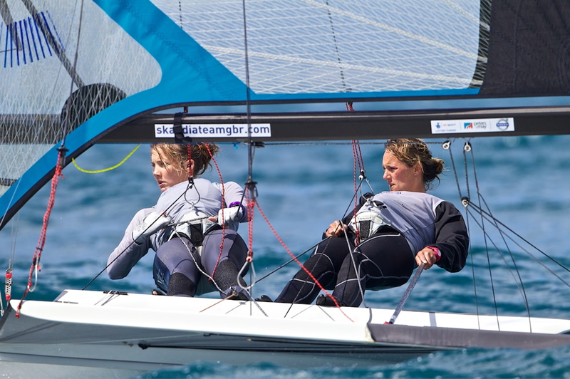 The Danes maintain their solid lead however the reset benefitted ISAF Sailing World Cup Miami victors Martine Grael and Kahena Kunze (BRA), 14th after the qualification stages, who have climbed to second after discarding their carry forward race, and only counting their final race scores. However the Brazilians are tied on points with the new ex-Radial/470 pairing of Charlotte Dobson and Sophie Ainsworth. The Brits were unfortunate to capsize just metres from the finish line when in third place in the first race of the day, eventually finishing 12th, but picked up 2,3 from their subsequent two races. Penny Clark and birthday girl Nicola Groves, 24 today, are in eighth place overall with scores of 4,9 sandwiching a discardable 25th.