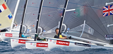 In the Finn, Giles Scott continued his ‘holiday’ from America’s Cup sailing with two wins from three races to extend his lead. The 25-year-old who was Finn World and European Champion in 2011, has been taking a sabbatical from the Olympic heavyweight class to work with the Italian Luna Rossa America's Cup challenger, but has returned to his dinghy roots to compete in the Palma and Hyeres World Cup regattas this month.