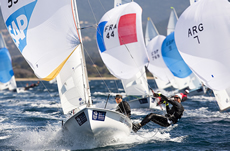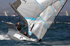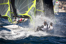 Exmouth's Stevie Morrison and Ben Rhodes sailed a solid day to improve to third overall in the class, tied on points with France's Julien d'Ortoli and Noé Delpech, even if Morrison feels there’s still room for improvement. “Whether it’s a lack of practice or what but we’re really making a hash of the starts,” explained Britain's London 2012 49er helm. “We’ve been pretty much last off the startline in all three races today, so that’s been a bit disappointing, but it’s really encouraging clearly how fast we’re going. We’ve got a lot of boat speed and we’re sailing relatively well after the start.”