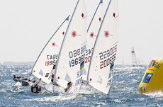 Tonci Stipanovic (CRO) leads Brazil’s Bruno Fontes and Robert Scheidt in the Laser after a race win and a discarded BFD. Australia’s Matt Wearn took the days other bullet but carrying forward a 44th he only moves up to 25th overall. Britain's Nick Thompson had a better day posting a 9-3 but he is still reeling from an awful qualifying series and will be struggling to make the medal race at this stage.