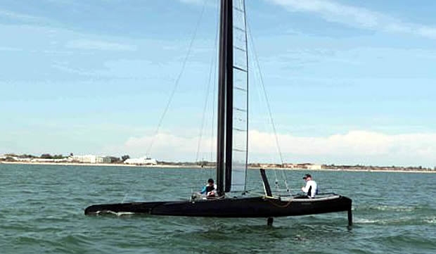 The first Team Hydros C-Class catamaran took to the water at La Grande Motte for its maiden voyage. This is the first time a vessel using TPT carbon fiber technology, the latest development in composite materials, takes to the water!