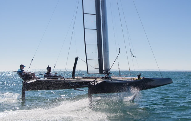 "We are the first team to benefit from having two yachts and also the first to sail on the waters of the regatta venue," says Jérémie Lagarrigue, head of the Hydros project. "We are very excited about capitalising on both of these advantages. We will be able to gain good knowledge of the conditions at the championship venue, which is excellent, and, above all, we will be able to try out different configurations of foils, which should enable us to make substantial and rapid progress and improve our flight ability, particularly upwind."