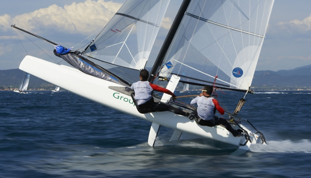 Just two points separate the leading trio of Vittorio Bissaro and Silvia Sicouri (ITA), Billy Besson and Marie Riou (FRA) and Darren Bundock and Nina Curtis (AUS) after two Nacra 17 gold fleet races.