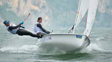 With victory effectively in the bag the crew Bissaro–Sicouri, who are already ranked ISAF no1 in the world, the Italian crew came home fifth in the medal race on the course at the Fraglia Vela Malcesine, despite touching the pin at the start, forcing them to carry out a penalty turn.