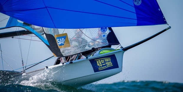 The sun rose, sailors rigged, and the 2015 49er & 49erFX European Championship started on time under blue skies, light winds, and fair swell. Two fleet of the worlds best skiff sailors took to the water to compete in the 49erFX, with the men’s 49er scheduled to start the following day.