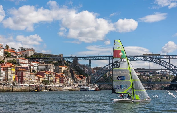 Jorge Lima and José Costa have claimed an early lead in the 49er European Championships on home waters in Porto, the second city of Portugal. With the 79-boat fleet split into three qualifying divisions for the first three days of competition, the inshore course favoured the right-hand side strongly throughout the day, especially so in light airs that never exceeded 8 knots.