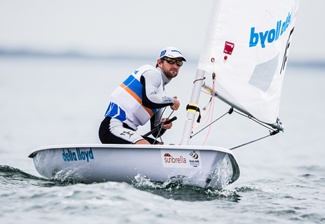 "It's obviously an ideal start,” said the lanky Dutchman. "For me it was important not to have very bad races because tricky wind conditions today—light wind [that] could come from any direction—so I didn't want to start with a bad result and that worked out.”