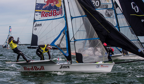 Australia's Jason Waterhouse and Lisa Darmanin have remained the most consistent racers over the 15-race series. Going into the Medal Race the Australians have a six point advantage over Switzerland's Matias Buhler and Nathalie Brugger.