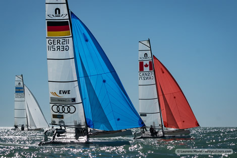 This 2016 World Championship for the Nacra 17 class is operating on all cylinders and the sailors couldn’t be keener to take on the varying conditions that come their way. Three races scheduled for tomorrow to end the qualifying round, and before we know it, Sunday’s medal race will be upon us.