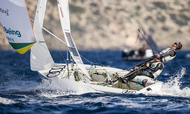 Australia's gold medallists Nathan Outteridge and Iain Jensen are steadily climbing the leaderboard, up to sixth now.