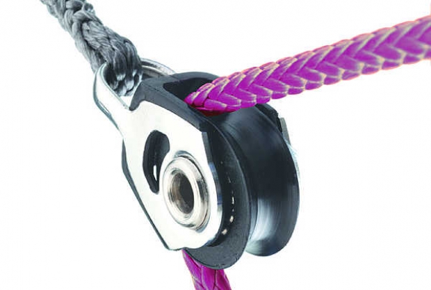 The edges of the rope guide have a steep angle to prevent lines from pulling across the head of the block. The wide strip used in this area also stops the guides from peeling.