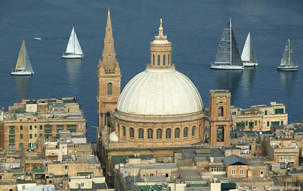 The 26-mile course took the fleet upwind along the East coast of Malta Island before requiring a tack to round Comino Island. Shortly after the tack sheets were eased during rounding of the low-lying resort island and spinnakers were set again for the run home. Neville Crichton's New Zealand-registered boat crossed the finish line just over two and half hours after the start and nearly 40 minutes ahead of nearest rival Zaraffa. The elapsed time gap represents more than 10 minutes on corrected time once handicaps have been applied.