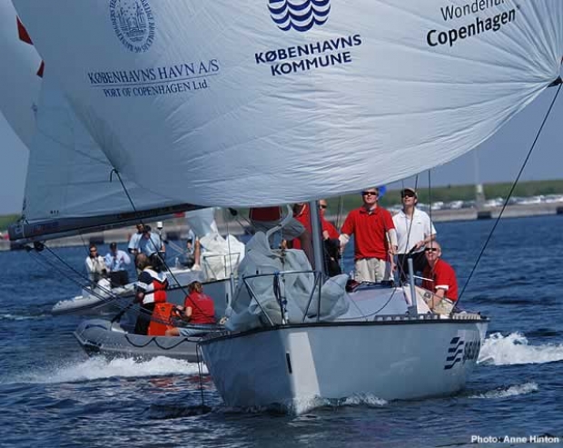 The weather today in Copenhagen is grey and damp with 10-12 knot breezes. The forecast for the racing tomorrow is better, with sunshine and northeasterly winds expected.