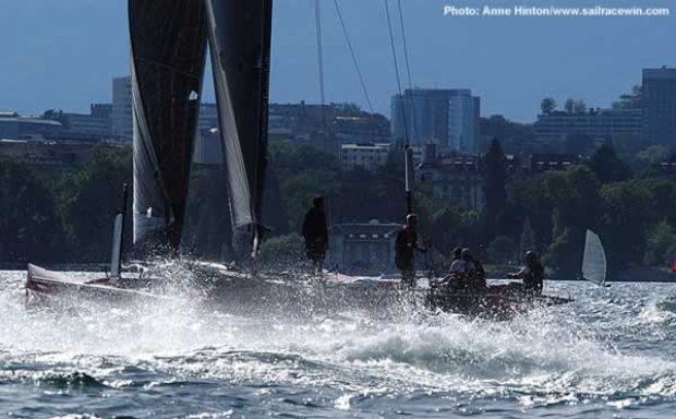 Bol d'Or first home - 'Team Red (Zebra 5)', skippered by Etienne David enjoys the conditions on Lake Geneva.
