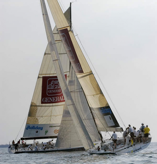 After today's racing, he’s the absolute leader of the event, winning the first race by 20 seconds over Luna Rossa, by an even larger margin in the match against Toscana Challenge, then finally, following an incredible gybing battle, winning the race against Mascalzone Latino by 15 seconds.